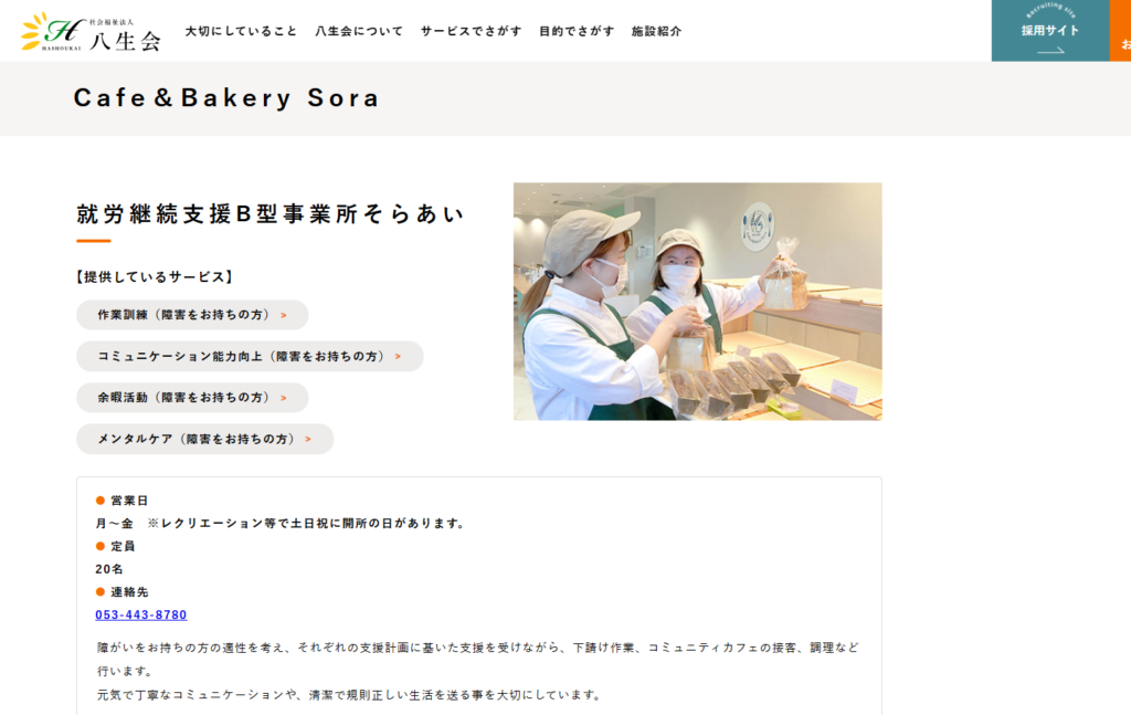 ・社会福祉法人 八生会:🔗就労継続支援B型事業所そらあい