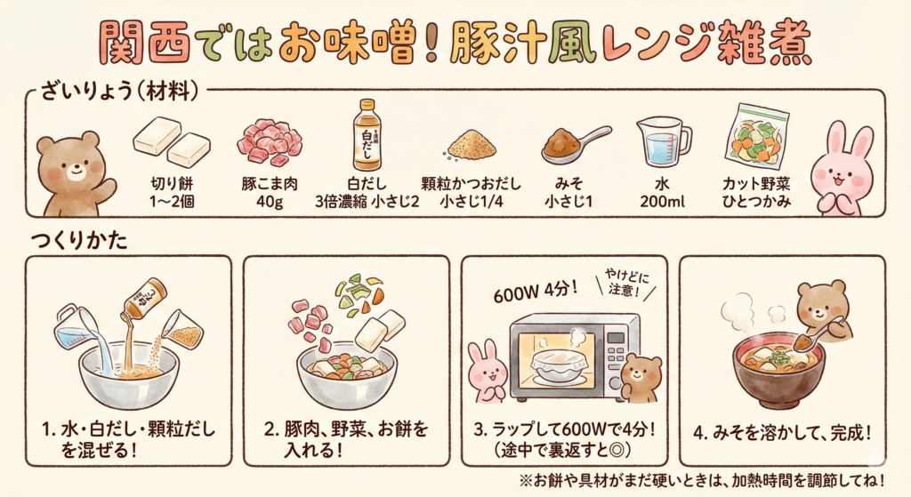 関西ではお味噌も「豚汁風レンジ雑煮」