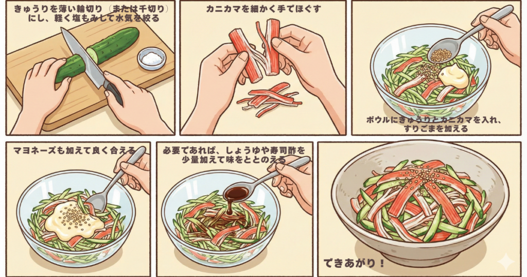 🥒カニカマときゅうりの紅白ごまマヨ和え