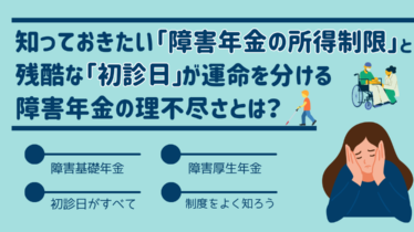 制度について 知っておきたい「障害年金の所得制限」と残酷な「初診日」が運命を分ける障害年金の理不尽さとは? 身体や精神に障がいがある20歳以上の人が申請し、認められることで支給される「障害年金」。でも、年金の支給額だけで、自立した生活を送るのは難しいという方は多く、「少しでも働いて、収入を得たい」と思っている方も多いのでは?で、いざ働ける範囲で働... 2026.04.03 制度について