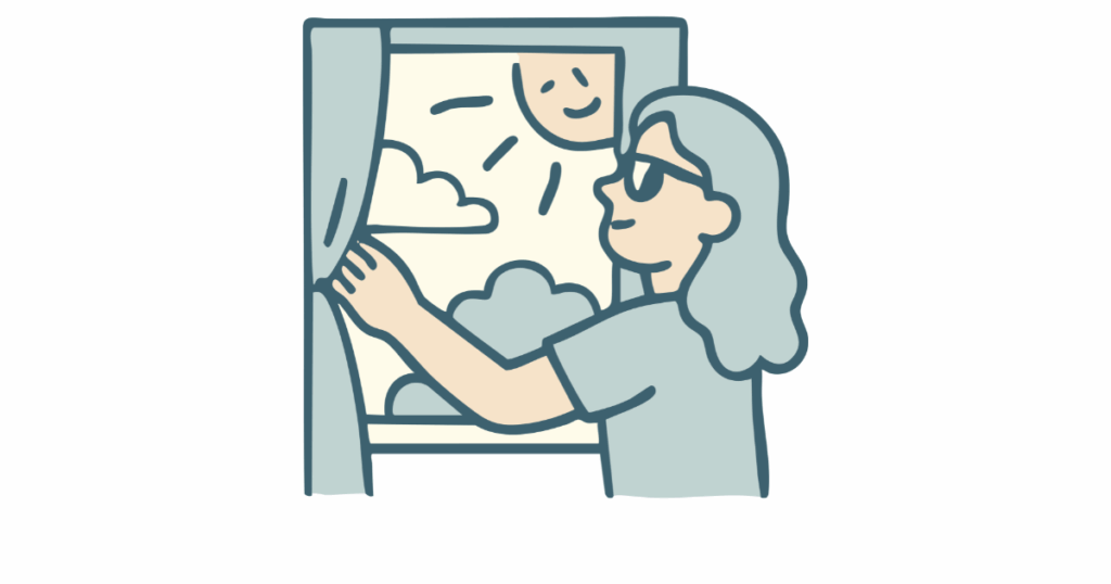 → まずは「毎朝同じ時間に起きてみる」ことから。体のリズムが安定してくると、気持ちも少しずつ落ち着いてきます。 - 朝の日光を浴びる(カーテンを開けるだけでも◎)